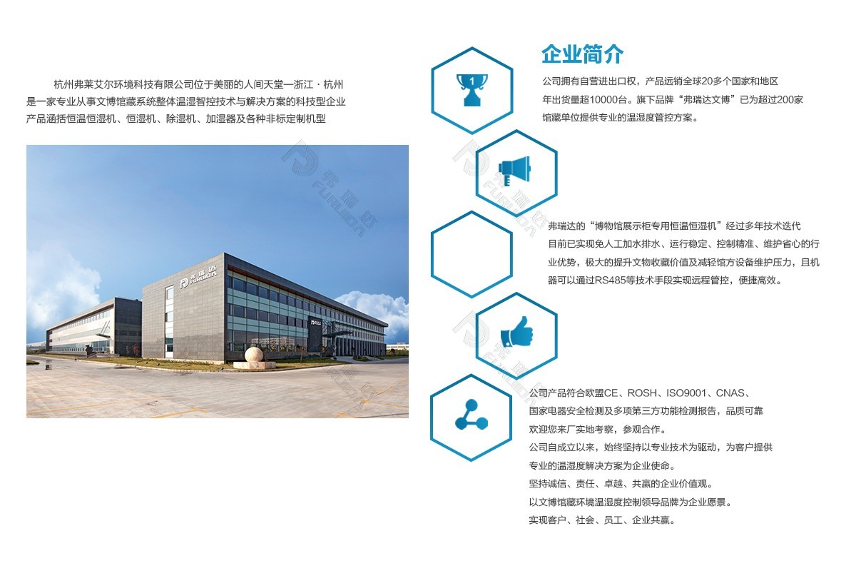 杭州弗萊艾爾環(huán)境科技有限公司位于美麗的人間天堂---浙江·杭州,是一家專業(yè)從事恒溫恒濕機、恒濕機、除濕機、加濕器等溫濕度控制產(chǎn)品的研發(fā)、設(shè)計、生產(chǎn)和銷售為一體的科技型企業(yè),是中國領(lǐng)先的空氣溫濕度整體解決方案提供商。">