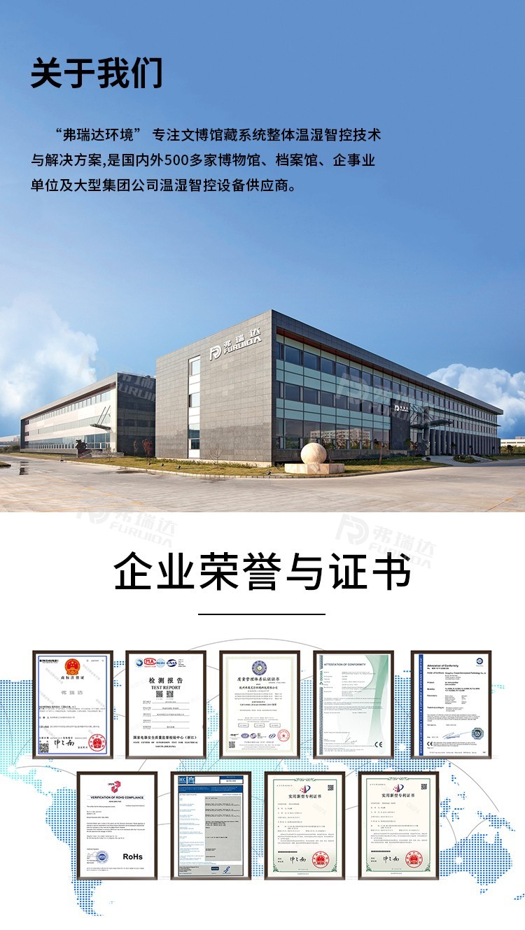 v 弗瑞達展柜恒溫恒濕機歷經(jīng)10多年技術(shù)迭代及項目實戰(zhàn)和錘煉,機器性能更穩(wěn)定,控制數(shù)據(jù)更準(zhǔn)確,技術(shù)經(jīng)驗更豐富,是國內(nèi)外200多家文博館藏單位恒溫恒濕項目指定的合作品牌;