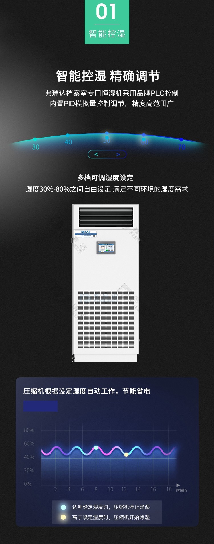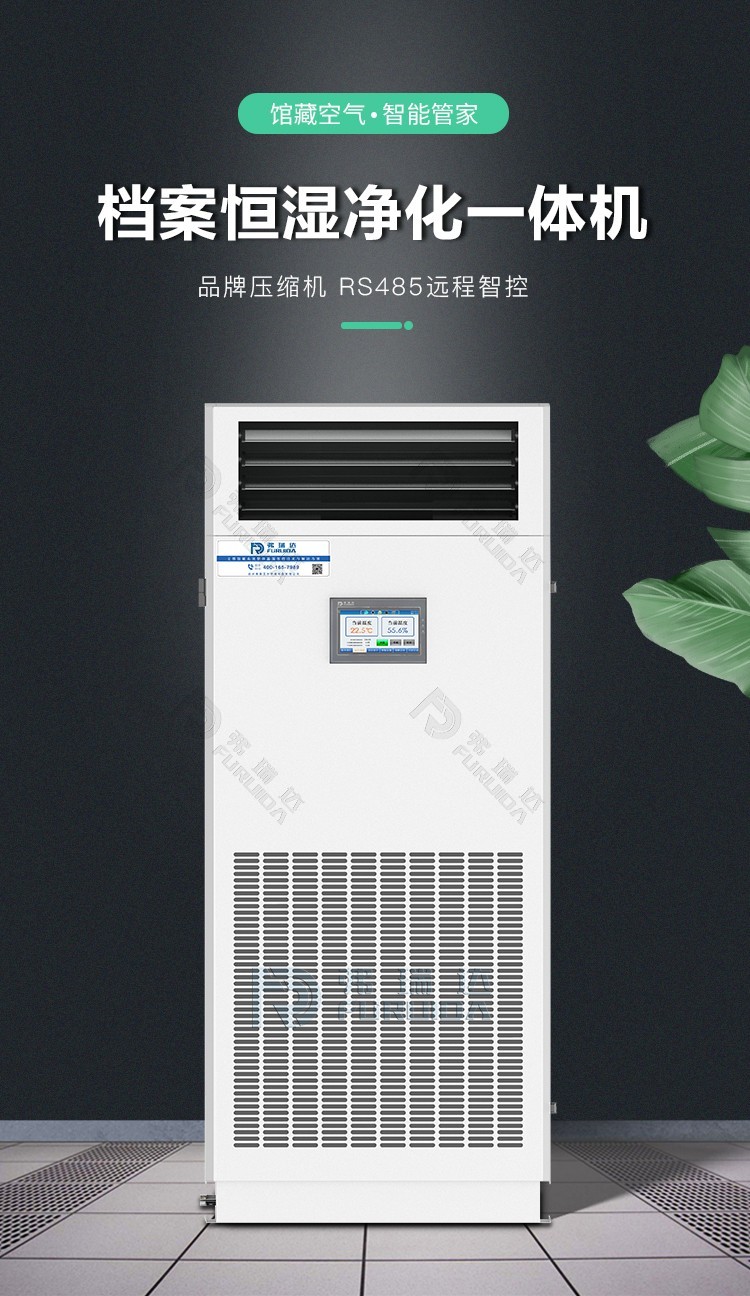 弗瑞達(dá)檔案恒濕機(jī)又稱檔案恒濕凈化一體機(jī)、檔案除濕加濕一體機(jī),是一款專門根據(jù)館藏環(huán)境室內(nèi)濕度控制要求而設(shè)計(jì)的一款控濕設(shè)備,集除濕、加濕、空氣凈化于一體,通過壓縮機(jī)制冷除濕、水分蒸發(fā)加濕的方式,由其控制系統(tǒng)進(jìn)行集中控制,以達(dá)到室內(nèi)濕度的控制要求。