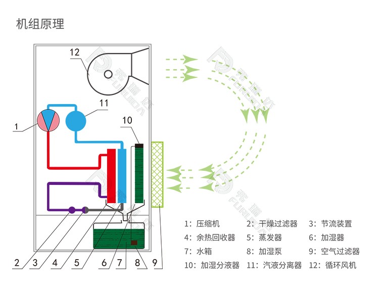 v 凈化過濾:機(jī)組采用初效/中效/過濾系統(tǒng),易于維護(hù)清洗,避免了細(xì)小灰塵進(jìn)入機(jī)組,阻塞蒸發(fā)器縫隙,而導(dǎo)致除濕效果差、故障頻繁等問題。