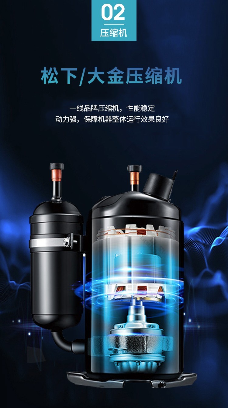 v  壓縮機和主要配件通過制冷系統(tǒng)科學(xué)合理的優(yōu)化設(shè)計,確保在不同環(huán)境下正常運行。克服了國內(nèi)同行業(yè)機型制冷量、抽濕量不足,機組頻繁啟動產(chǎn)品故障率高的缺點。同時也提高了產(chǎn)品的使用壽命。