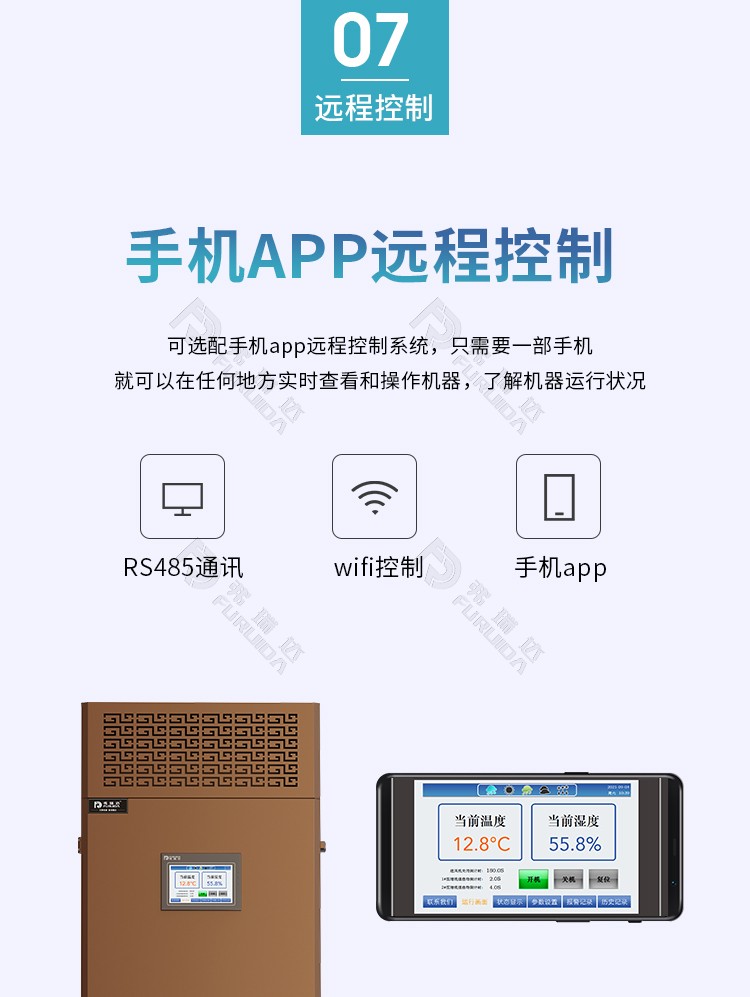 弗瑞達(dá)酒窖空調(diào)又稱酒窖恒溫恒濕機,是一款采用壓縮機控制系統(tǒng),通過冷熱正負(fù)抵消,濕度中和原則,由其控制系統(tǒng)進(jìn)行集中控制,以達(dá)溫濕度控制的要求。根據(jù)不同環(huán)境控制要求,采用微電腦或PLC高精密等不同控制系統(tǒng)。