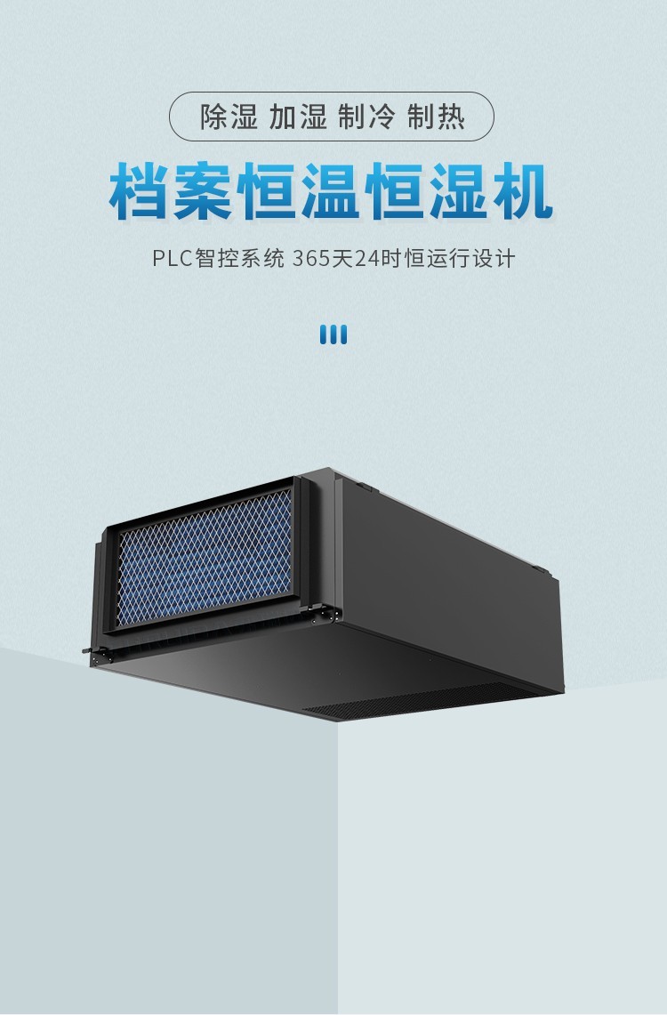 恒溫恒濕機適用于檔案室、博物館、資料室、銀行金庫、實驗室、數(shù)據(jù)機房等環(huán)境。集除濕、加濕、制冷、制熱四大功能,PLC智控系統(tǒng)365天24時恒運行設(shè)計。
